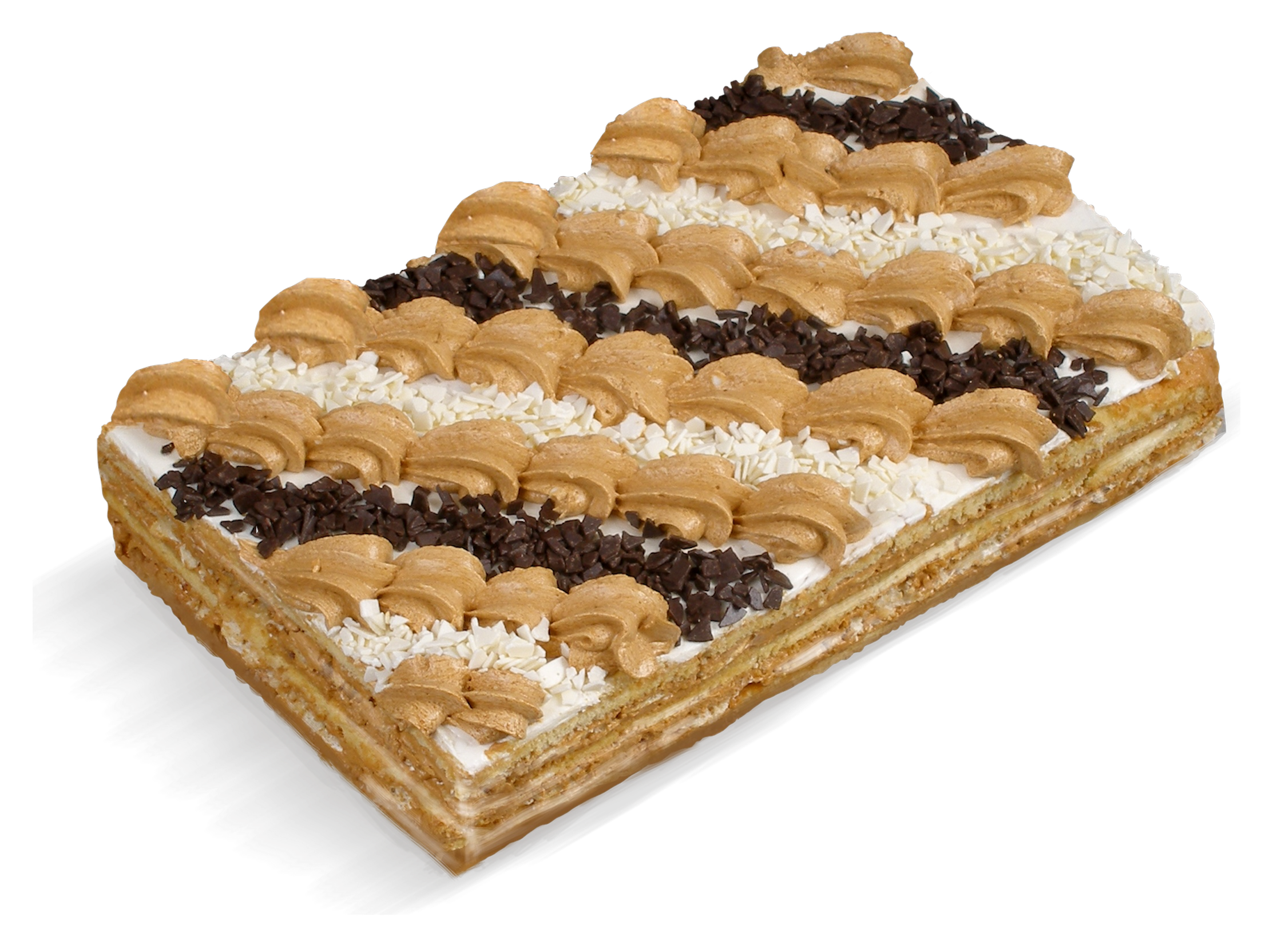 Тонкі шари бісквітного та повітряно-горіхового напівфабрикату з начинкою із вершкового крему та молока згущеного вареного
