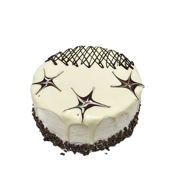 Шари бісквітного та повітряно-горіхового напівфабрикатів з’єднані кремовою начинкою із молоком згущеним вареним, вкритий глазур’ю.